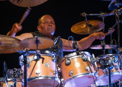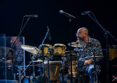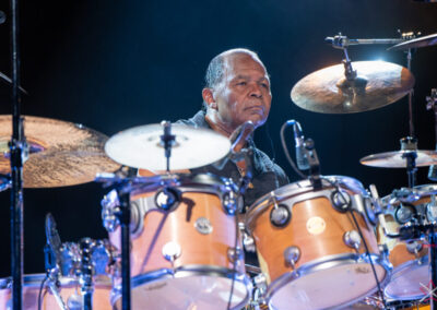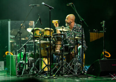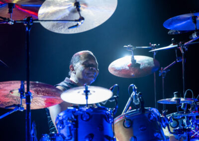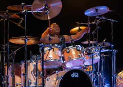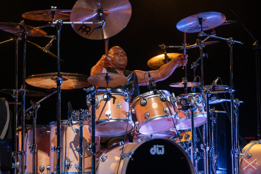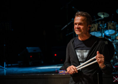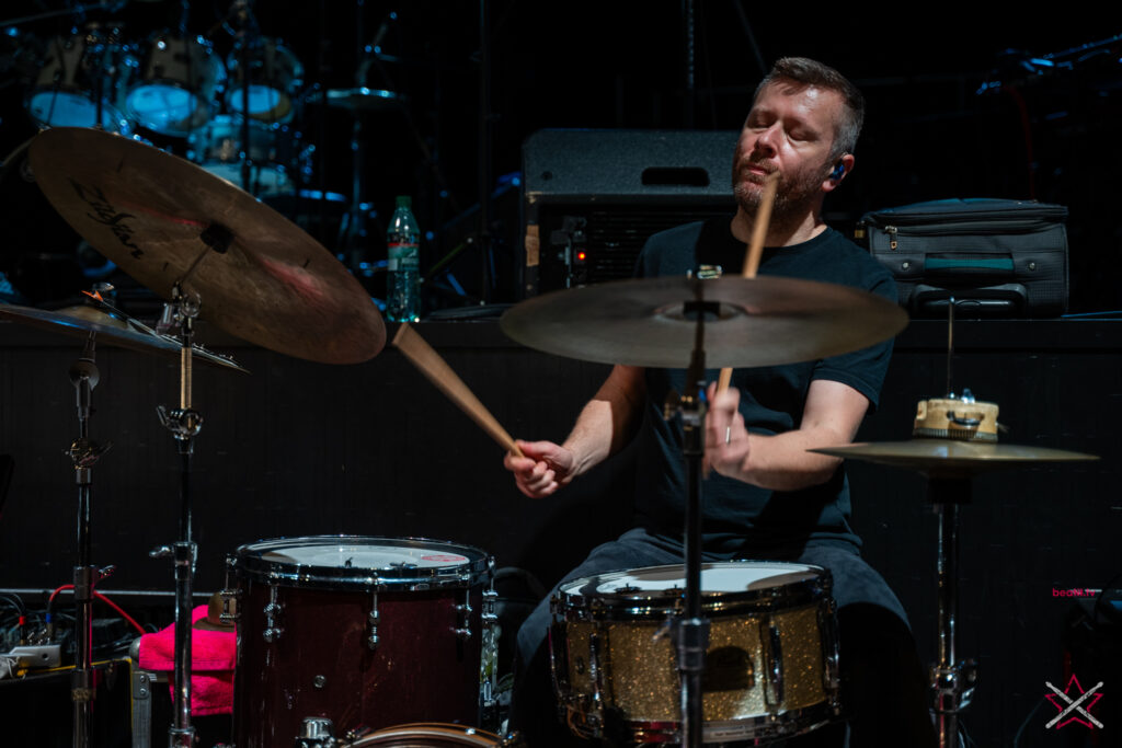 On Tuesday, June 4, in the same venue, we witnessed a performance by Jonathan Moffett, under the title “The Jonathan Moffett Drum Show”. Announced by Piotr Metz of Polish Radio Two, the artist received a standing ovation as soon as he entered the stage. The meeting with “Sugarfoot” began with an interview conducted by Mr. Metz. Moffett talked about his childhood in New Orleans, the beginnings of his musical path, moving to Los Angeles, meeting the Jackson family, and there were also anecdotes about Michael Jackson. The drummer was also presented with the “Master of Groove” award. Let’s move on to the performance itself, which was very dynamic and engaging despite the fact that there was only a single drummer on stage against a backdrop of Michael Jackson-related visuals. He kicked off with two groove killers – “Wanna Be Startin‘ Somethin’” and “Jam.” The latter featured the first instance of Sugarfoot’s trademark, which is choking his crash cymbals in time with Michael’s movements on the screen. The audience then heard “The Way You Make Me Feel”, “Billie Jean”, “Smooth Criminal”, “Earth Song” and a medley of “Black and White” and “Beat It”. There was also a solo based on the groove master’s… groove (you guessed it) with all kinds of bass drum patterns. The star drummer did not pass on a chance to do some more crash cymbal choking, which – let’s admit it – is very spectacular. A very interesting and dynamic show.