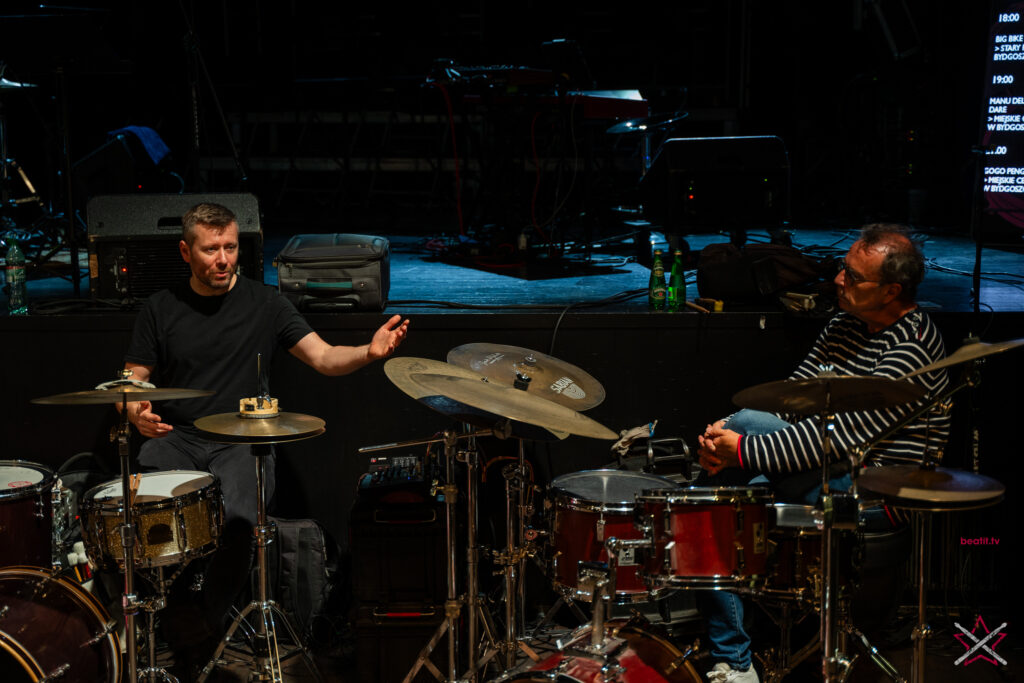 The next day, the Municipal of Culture in Bydgoszcz, Poland, became the absolute center of percussion art in Poland (if not Europe) for several hours. The International Drum Forum held there featured Michal Dąbrówka, Cezary Konrad, Dano Šoltis and host Piotr Biskupski as speakers (fortunately equipped with drum sets). Dano Šoltis is a Slovak drummer, leading the Czech-Slovak jazz band Vertigo, and in Poland collaborating with vibraphonist Bernard Maseli and bassist Michal Barański in the MaBaSo project. He is also a noted educator who has an opinion on quite a number of matters relating to drums and percussion. He shared his insights on pulse and beat with IDF participants. He illustrated it with Piotr Biskupski – the gentlemen presented two different rhythms, but with a common pulse. There was also talk about having a technical foundation that allows one to improvise. Piotr Biskupski also spoke about the need to practice technique (rudiments) not for the sake of practicing per se, but in order to achieve a musical effect. Cezary Konrad, in turn, focused on a particular big band piece, on the example of which he illustrated his approach to arranging drum parts. A very engaging concept for a lecture, allowing a peek into how an outstanding musician works. Michał Dąbrówka pointed out the value of practicing in a symmetrical way, i.e. using all limbs, making the weak side work, starting patterns or phrases from both sides. He also mentioned practicing triplets, quintuplets or septuplets, things that are uncomfortable and less intuitive. A valuable event.