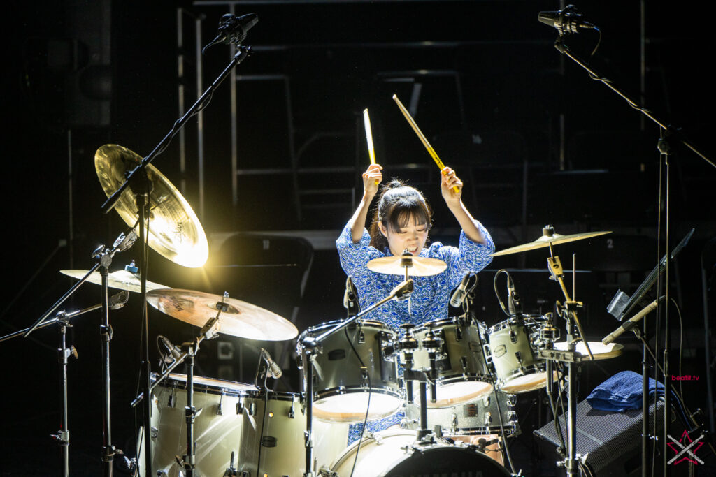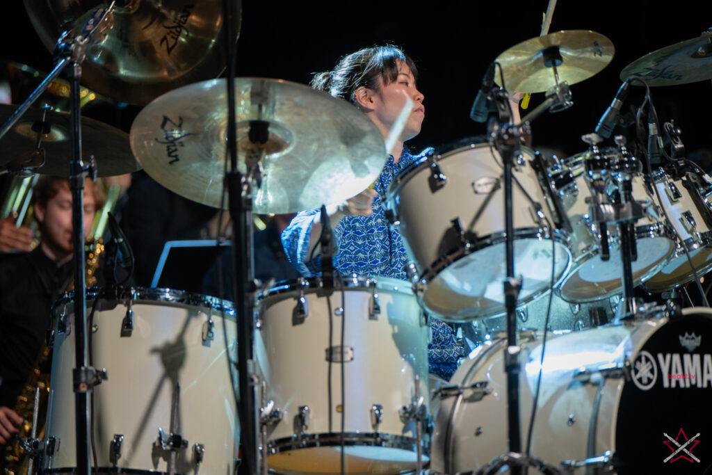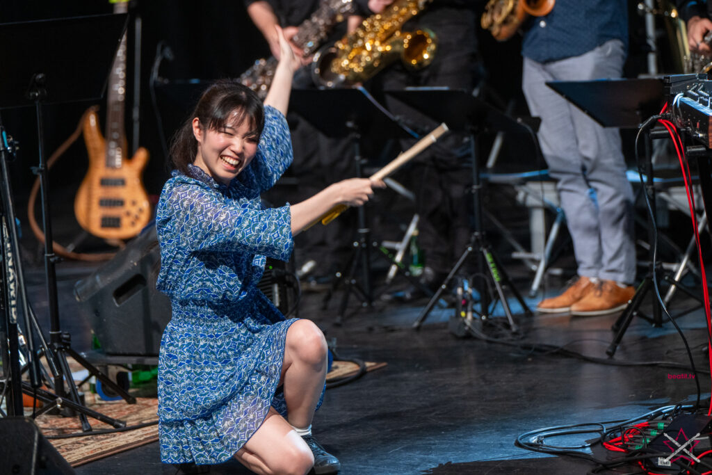 In the evening of that day, Senri Kawaguchi took over the stage of the Municipal Center of Culture in Bydgoszcz, Poland. This petite, unassuming and very modest girl from Japan has been quite a sensation in recent years in the drumming world, especially online (just take a look at the popular stuff she has done for Drumeo). One should not be fooled by her exterior. When she sits behind a drum kit, she plays hard, though swings at the same time. In the first part of the show, she played with an instrumental ensemble consisting of Bartosz Haliniak (alto saxophone), Sylwester Bugajak (guitar), Michal Szlempo (keyboards), Grzegorz Nadolny (bass guitar), and in the second part with the seventeen-piece Felix Jazz Orchestra led by Michal Szlempo. Senri showed that she knows how to handle dynamics – playing softly, then moving on to a strong rock beat, not shying away from playing double bass. There were also some juicy fills and engaging drum solos. We didn’t pick out the names of all the writers, because at some point on we simply let ourselves be swept away by the music. However, we did note that the pieces performed that evening were composed by, among others: Sylwester Bugajak, Michal Szlempo and Senri herself (the beautiful ballad “Longing Skyline”). In addition, the Orchestra together with Senri performed “Trains” – a classic tune by Steps Ahead. Those who were not there to witness that should regret it!