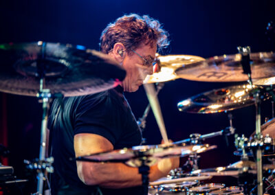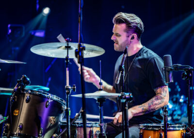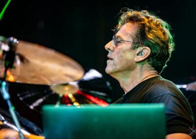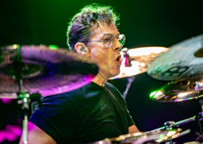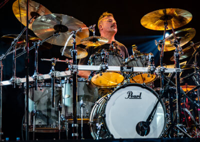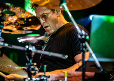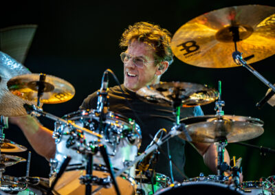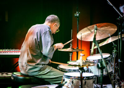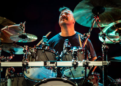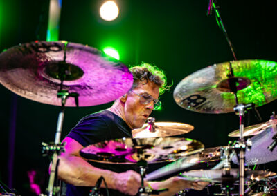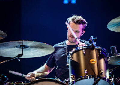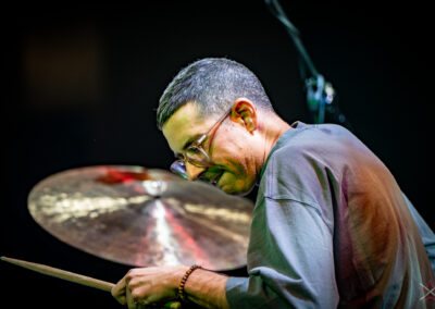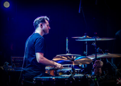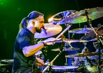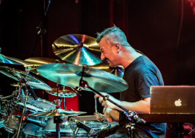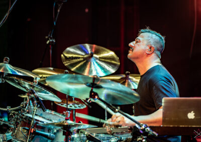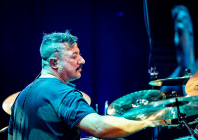 is already an institution among freelance drummers. His performance was a real geyser of energy (the guy is pushing 60) – inventive rhythms that are compositions in themselves, ambidexterity both as far as his hands and feet are concerned (we counted six pedals on which his feet “danced” without a moment’s rest) facilitating polyrhythms, creative use of rata toms (a kind of wooden octobans from DW), and to top it off, groove and punch. The Austrian maestro began his solo with, being one of his trademarks, what he calls Stix Trix (Buddy Rich-style stick tricks). First, on the hi-hat, then on the remaining cymbals and drum hoops, then the pedal-operated cymbals came into play (on this occasion a great Latino-style rhythm was played with the feet on four pedals on the left and two on the right). A standing ovation showed emphatically who was the star of the evening. The last song featured a much simpler drum part, which gave more room for a cool groove and was an excellently refreshing on the home stretch. A performance perfectly planned from the dramatic standpoint combined with flawless execution.