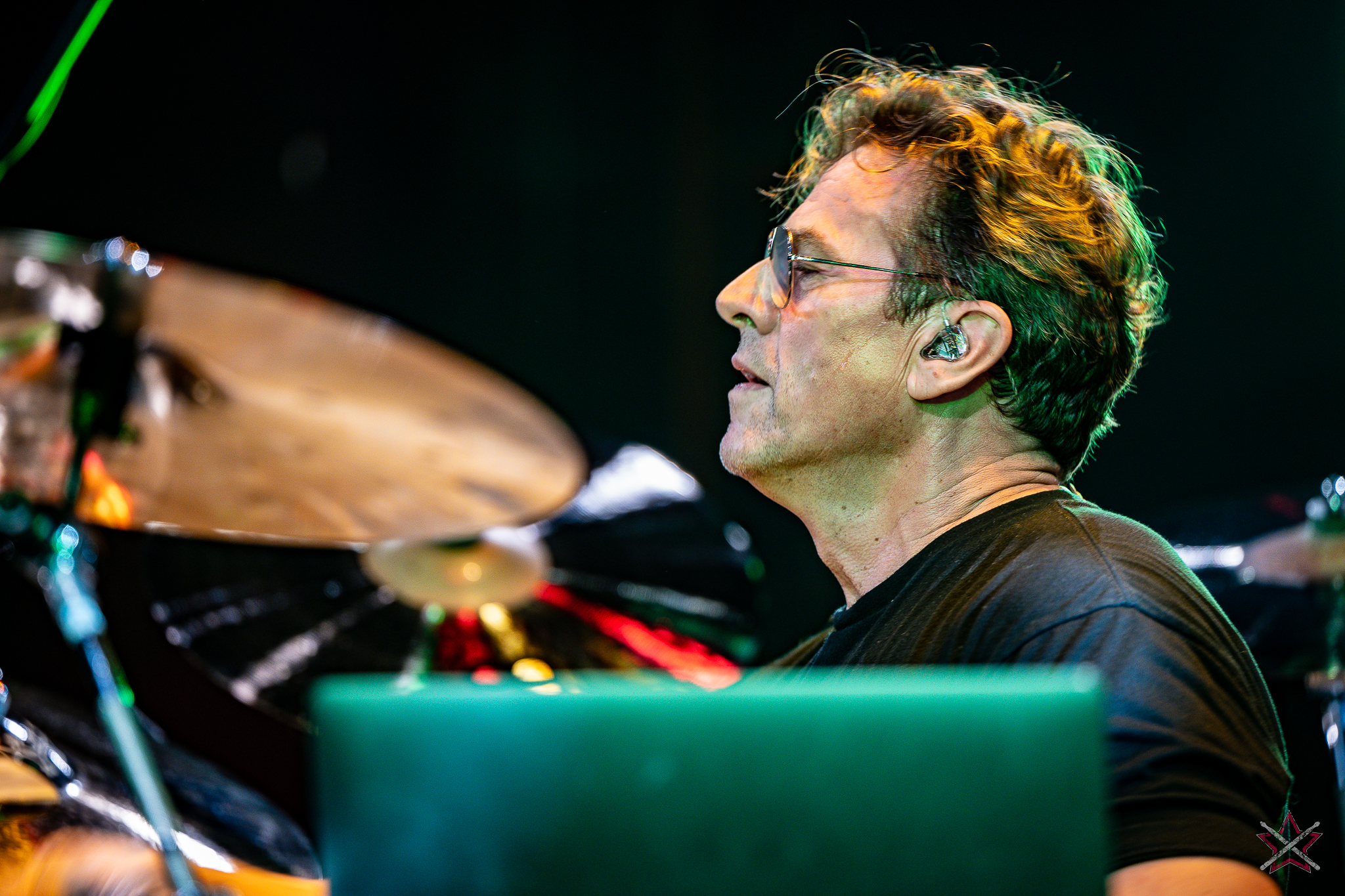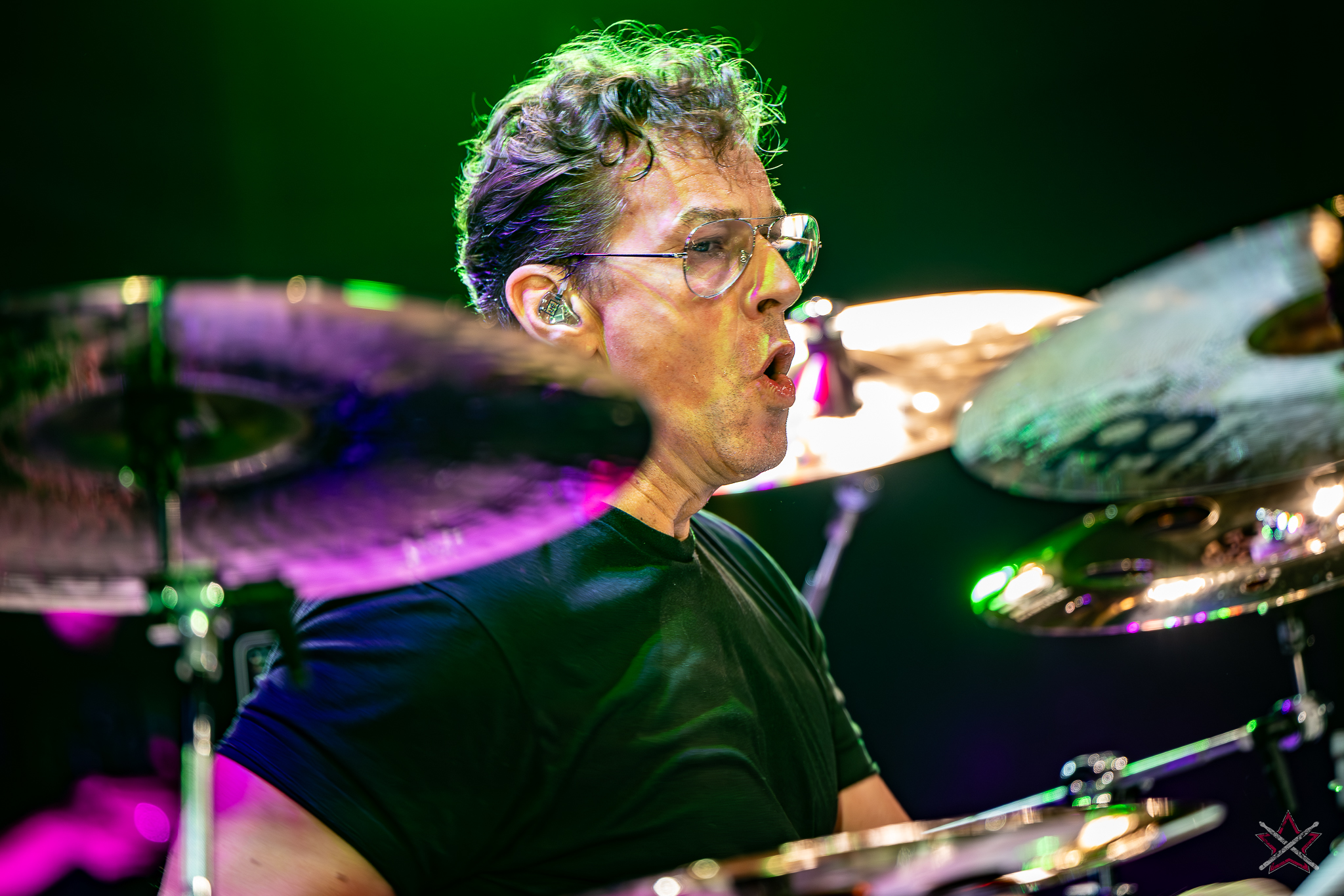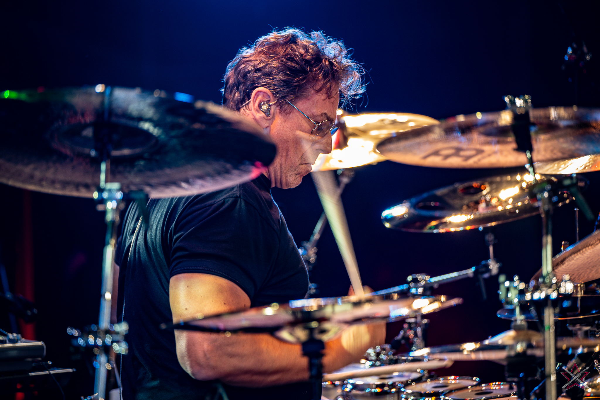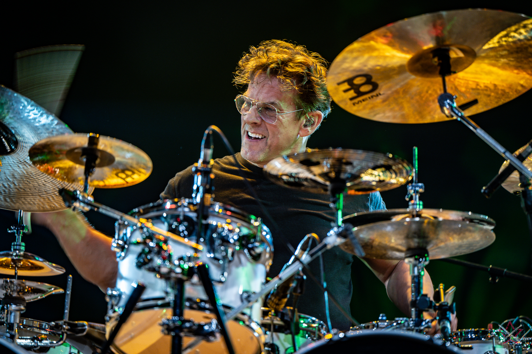 decided to go for ethereal sound creation, performing several compositions from his solo album, “Mark,” on which he played all the instruments. Not only did he play rhythmic figures, but also melodic motifs, for which he used drum hoops or a snare drum with disengaged snares. In the second piece, he used a small kit set up on the side of the drum riser: a bass drum, a snare drum, a floor tom, a pair of micro hats and two splashes placed face down on the floor tom and the snare drum. It was enough to leave everyone present in awe. In the next number, he put the emphasis on percussion instruments: the aforementioned splashes on the snare and the drums stool, various kinds of bells on strings, and the rustle of cymbals. Only before the last song did he speak to an almost mesmerized audience, handing out the aforementioned rope bells and chimes (he had dozens of these) to the listeners with a request for creating accompaniment. He showed that it is possible to capture an audience’s attention and enchant with musicianship without being flashy. The long queue of people eager to get an autograph or have their picture taken together after this performance (Mark was in a hurry to catch a plane and couldn’t wait until the evening signing session) proves that we were not alone in this opinion.