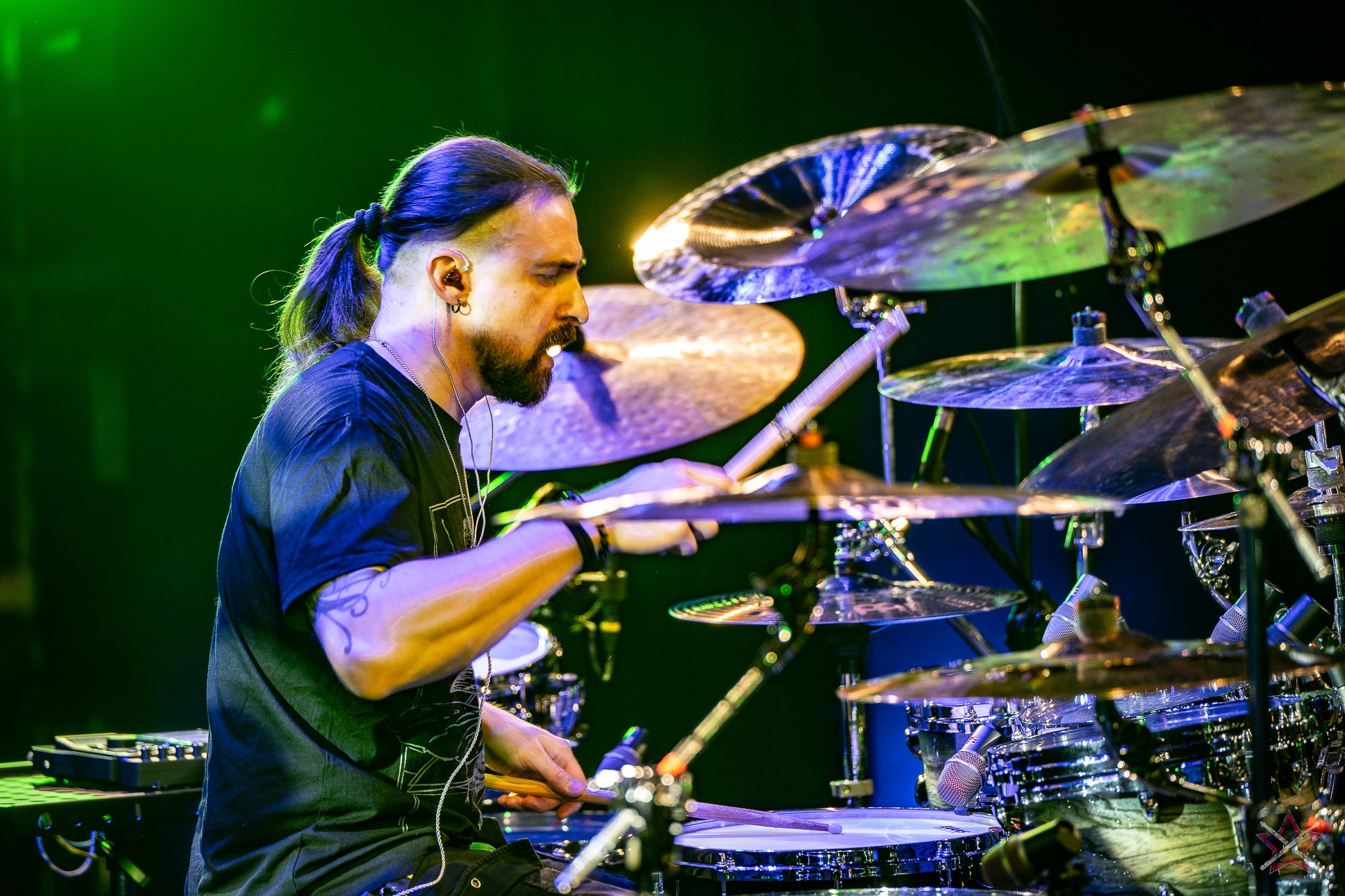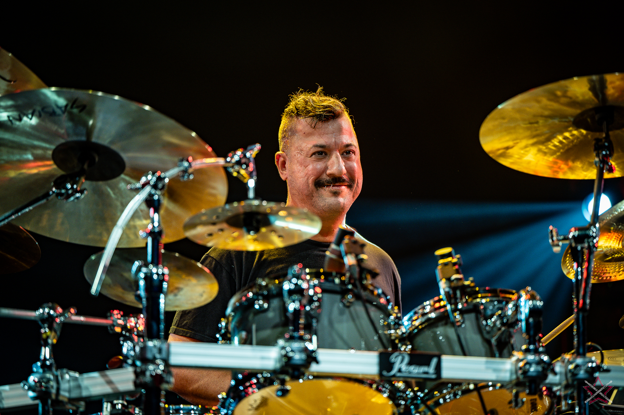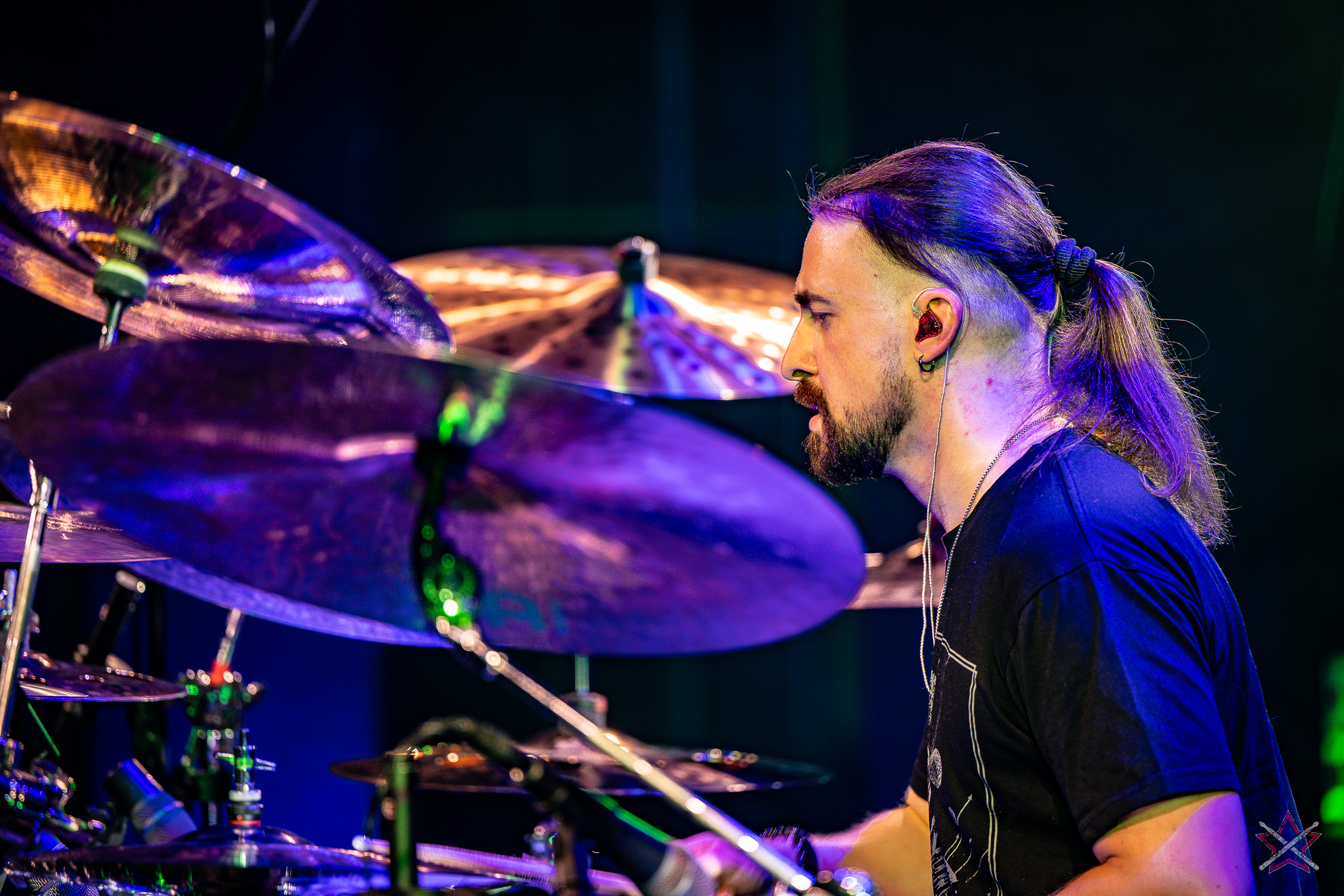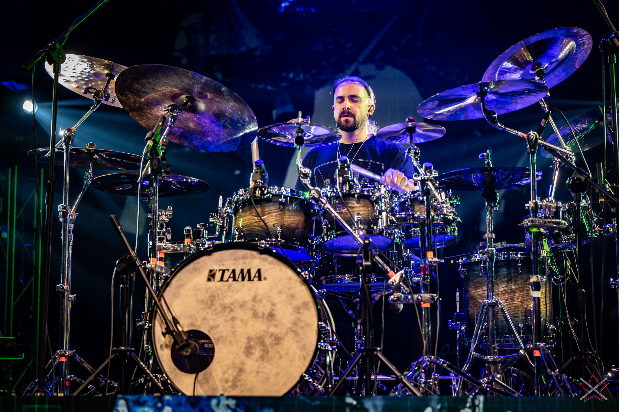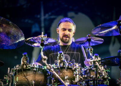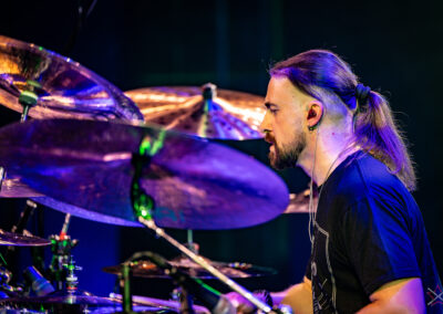 is already a real star in the world of drums. It was clear that he was one of the main attractions of the event and that the audience was looking forward to seeing him perform. He kicked off with Bomfunk MC’s “Freestyler”, which was a hit 26 years ago, and he certainly didn’t put off going into overdrive – there were elements of jungle beats, break beats and even blast beats. The next backing track was pure metal, so Riccardo fired off even more blast beats played with both hands leading (the Italian maestro’s ambidexterity is a well-known fact among fans) and explosive fills across the kit and back, and there was also some precise double-kick playing. In the improvised section of the performance, the artist added a great moment of open-handed playing and another excellent display of double bass drum work. Worthy of separate note was Riccardo’s excellent presentation of his hand technique in response to a question about how he arrived at such a pace of playing. He clearly and coherently described and showed what it is based on – no beating around the bush to make it look more “mystical”. After all, everyone has to do their proverbial 10,000 hours anyway 😉