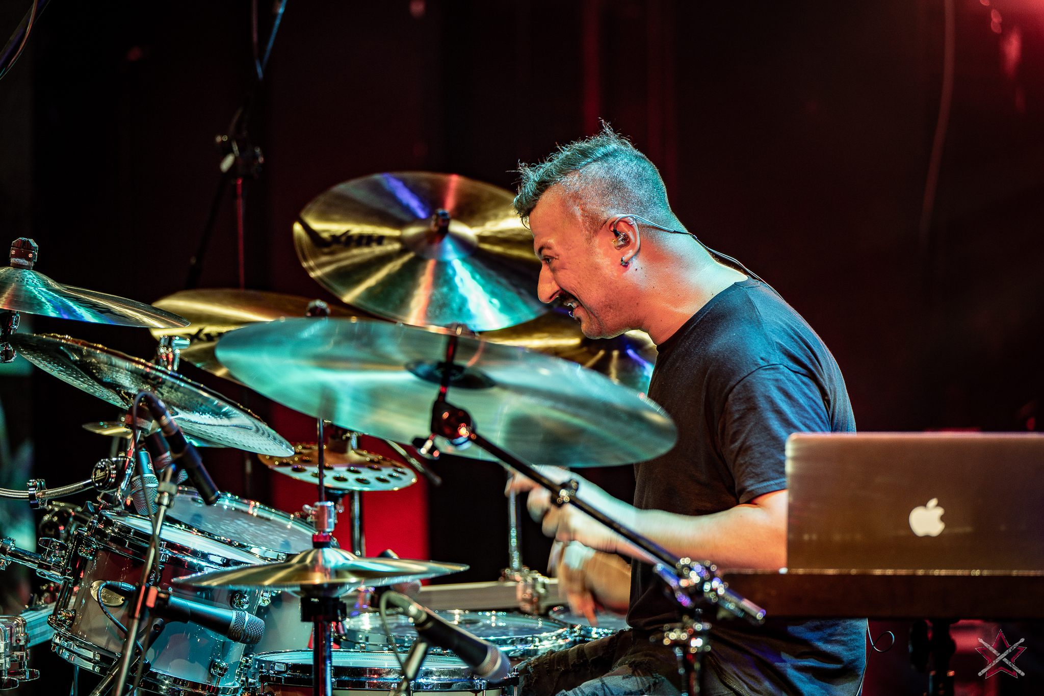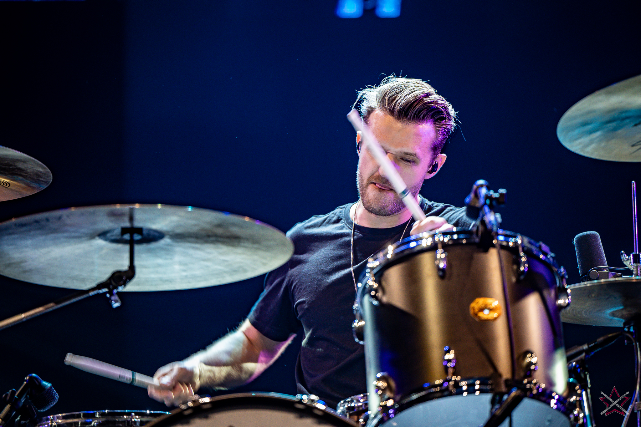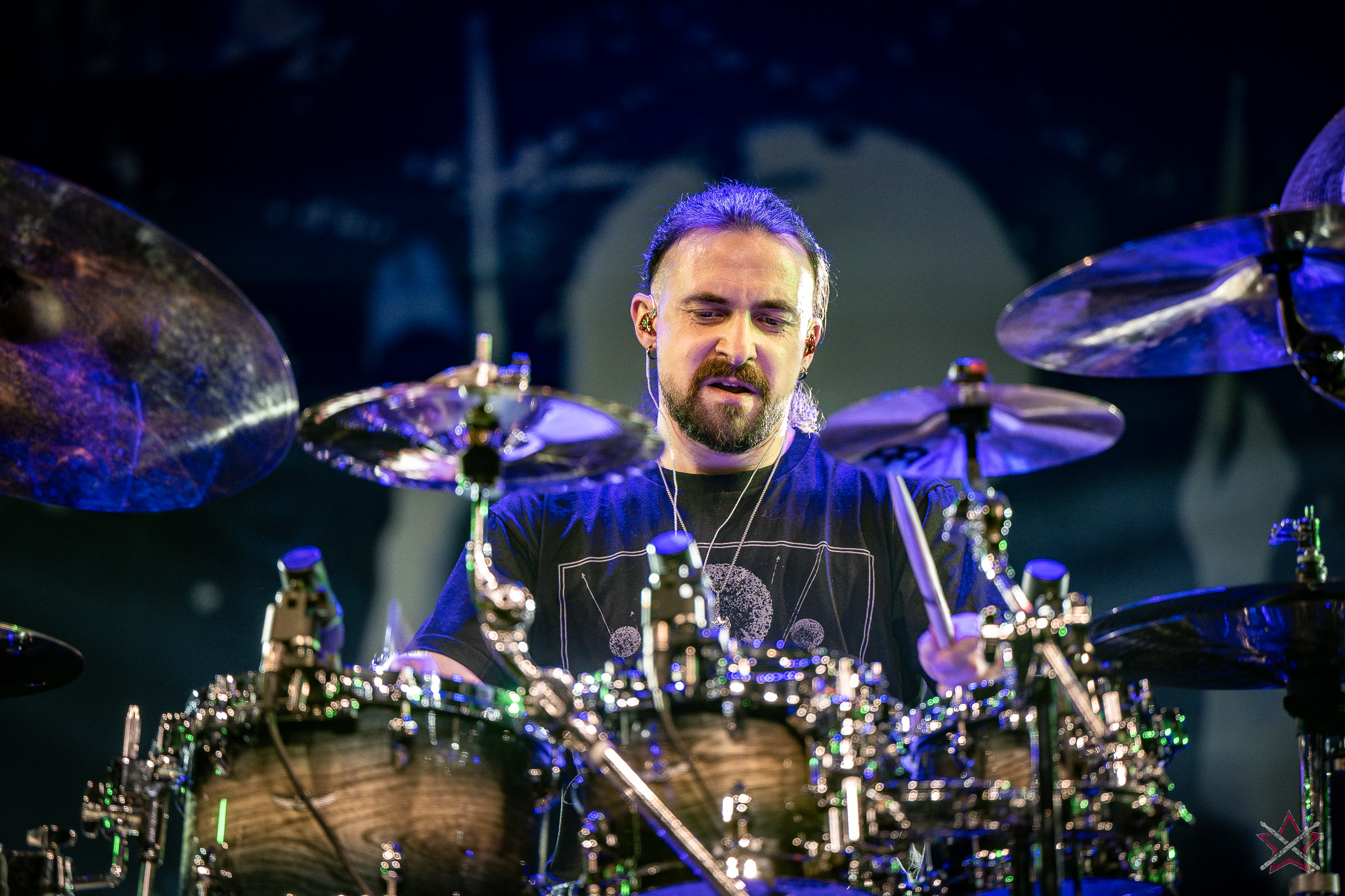 is already a real star in the world of drums. It was clear that he was one of the main attractions of the event and that the audience was looking forward to seeing him perform. He kicked off with Bomfunk MC’s “Freestyler”, which was a hit 26 years ago, and he certainly didn’t put off going into overdrive – there were elements of jungle beats, break beats and even blast beats. The next backing track was pure metal, so Riccardo fired off even more blast beats played with both hands leading (the Italian maestro’s ambidexterity is a well-known fact among fans) and explosive fills across the kit and back, and there was also some precise double-kick playing. In the improvised section of the performance, the artist added a great moment of open-handed playing and another excellent display of double bass drum work. Worthy of separate note was Riccardo’s excellent presentation of his hand technique in response to a question about how he arrived at such a pace of playing. He clearly and coherently described and showed what it is based on – no beating around the bush to make it look more “mystical”. After all, everyone has to do their proverbial 10,000 hours anyway 😉