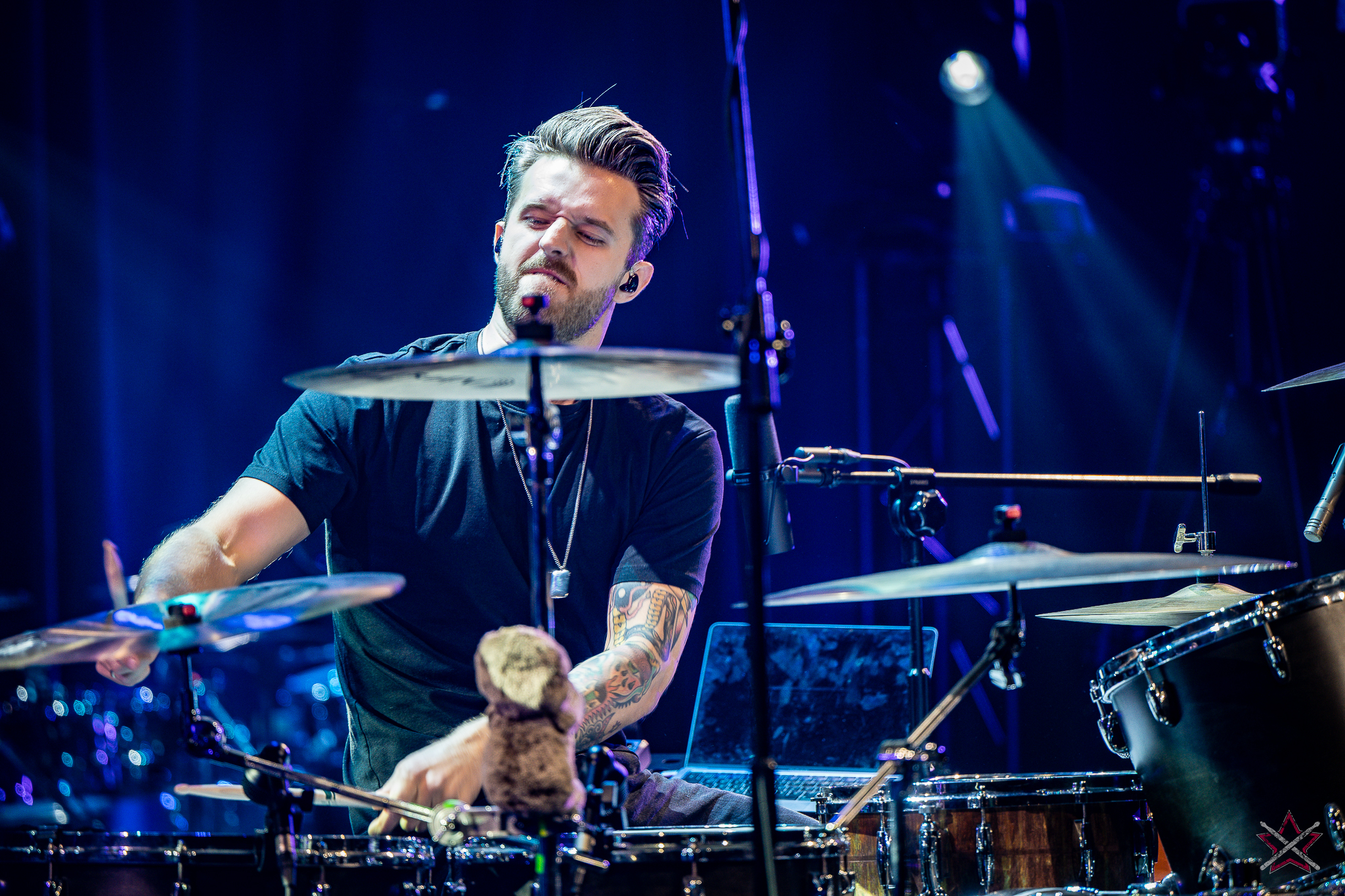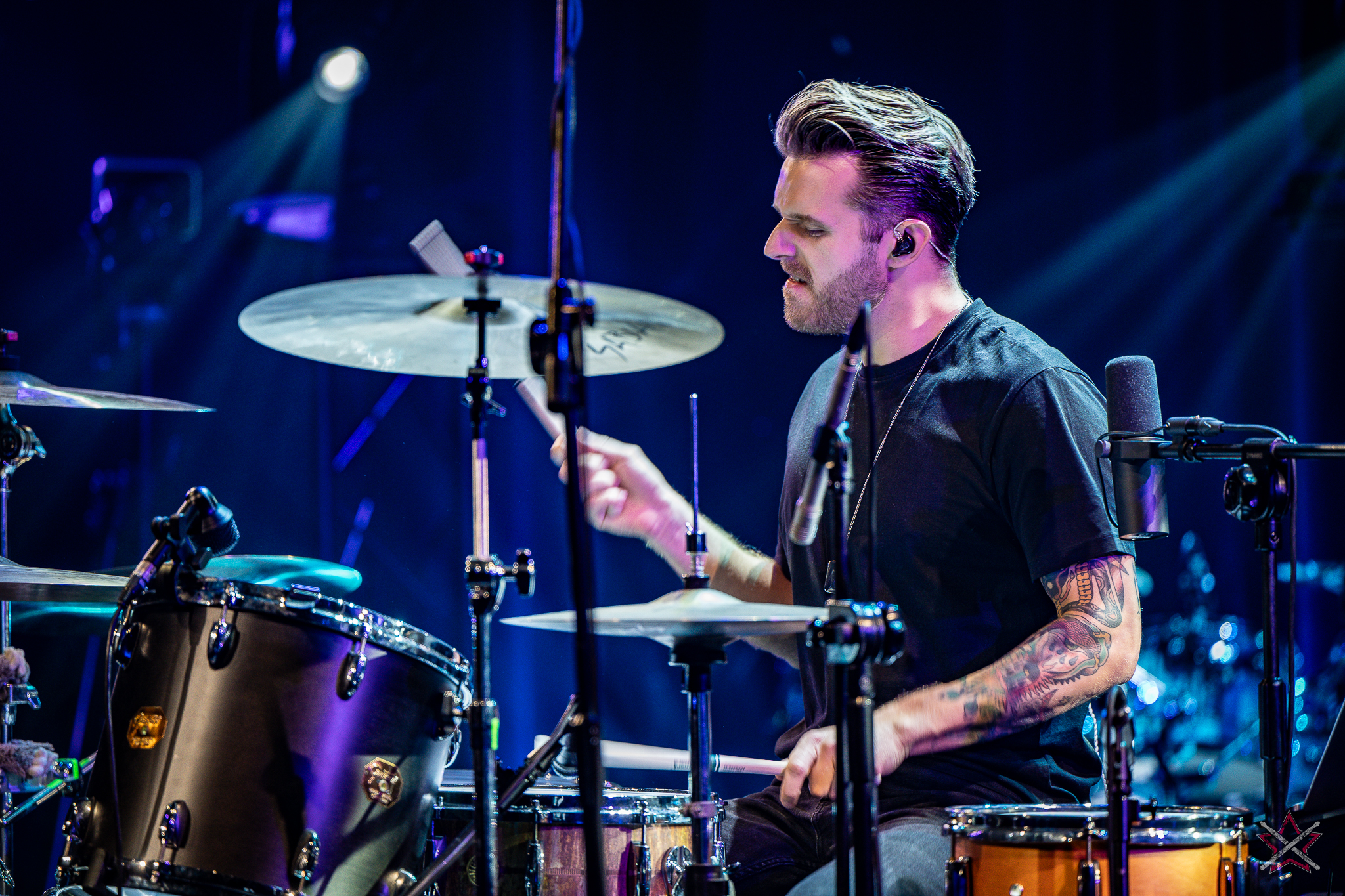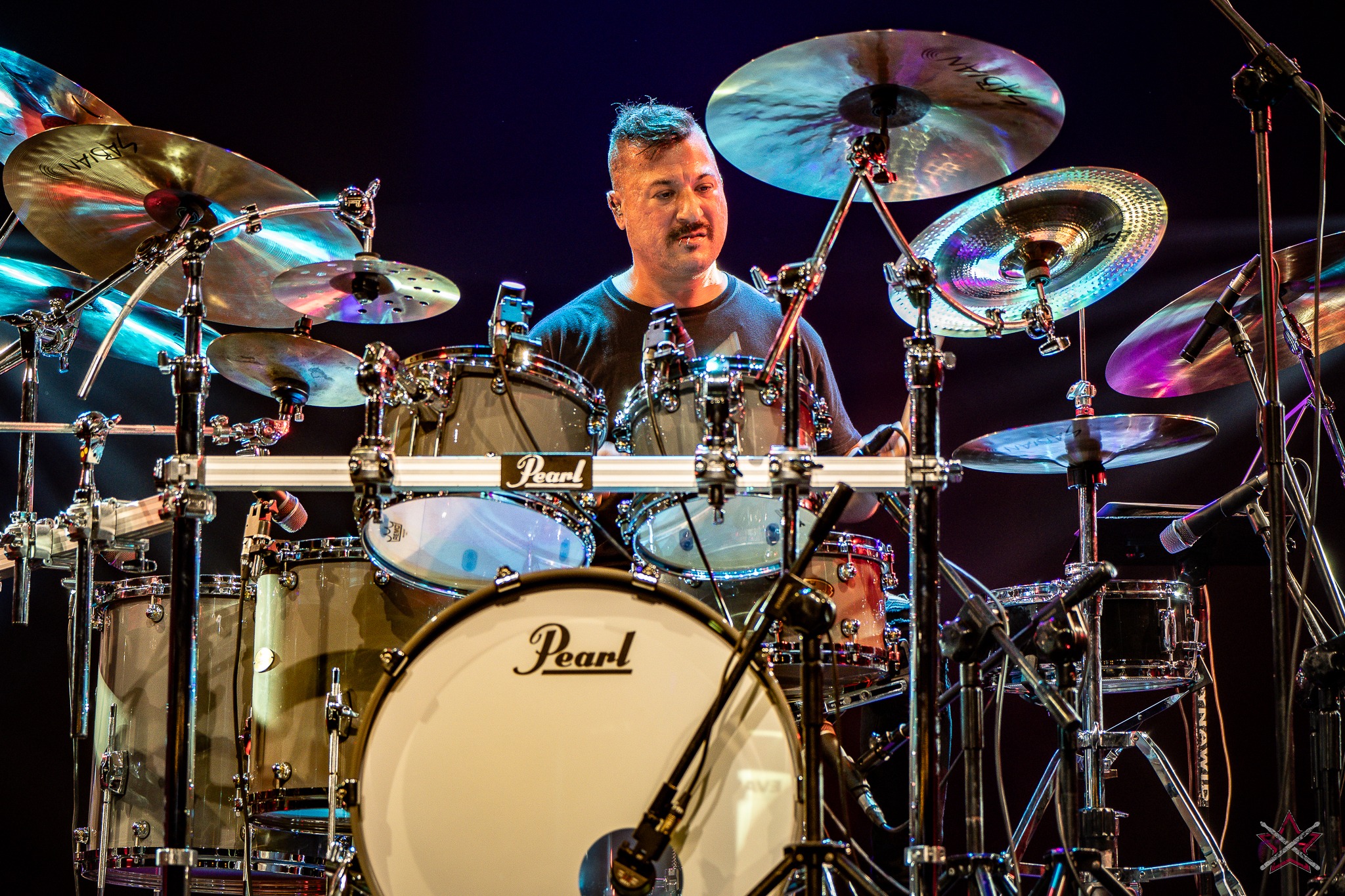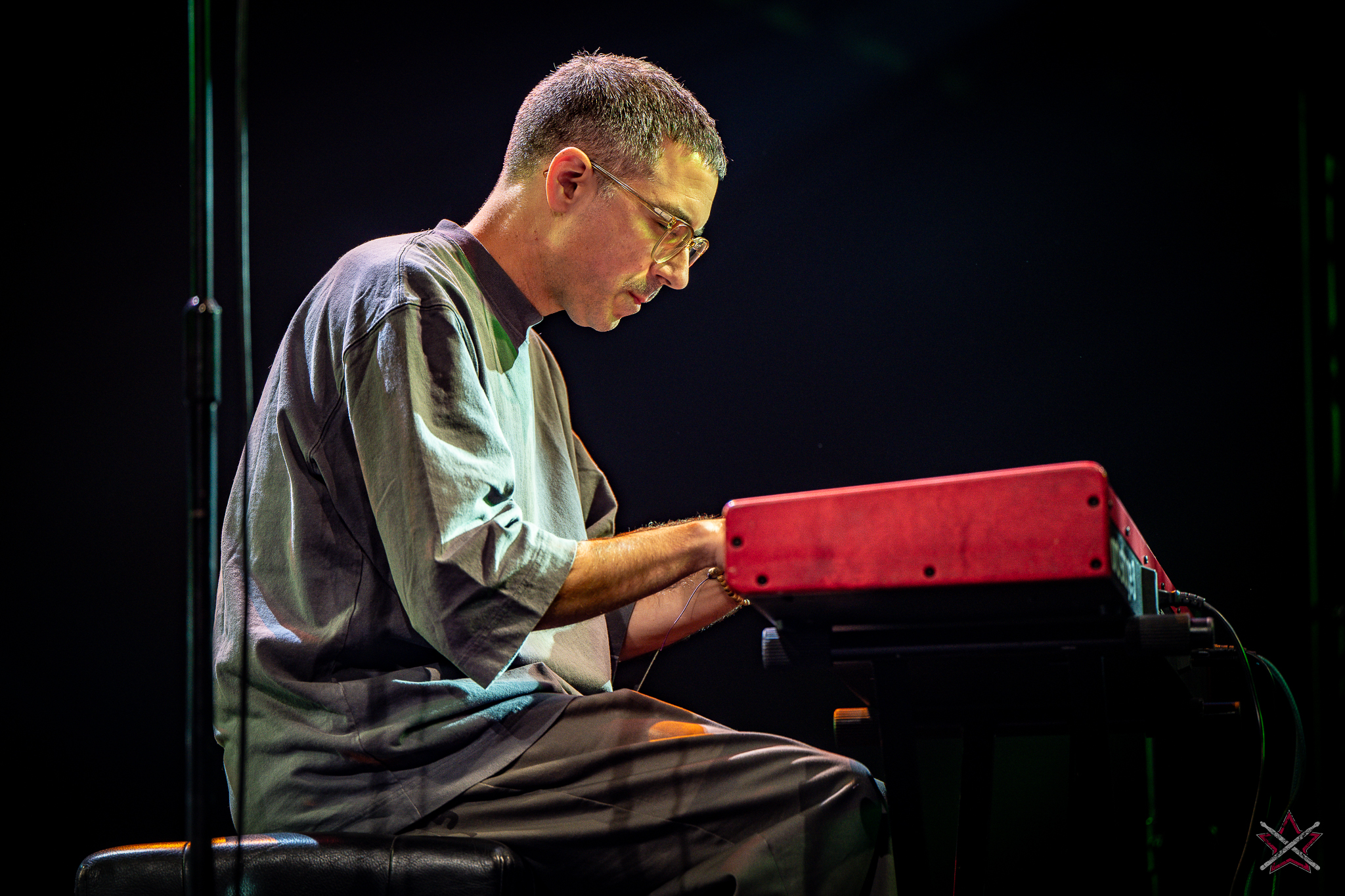 is already a real star in the world of drums. It was clear that he was one of the main attractions of the event and that the audience was looking forward to seeing him perform. He kicked off with Bomfunk MC’s “Freestyler”, which was a hit 26 years ago, and he certainly didn’t put off going into overdrive – there were elements of jungle beats, break beats and even blast beats. The next backing track was pure metal, so Riccardo fired off even more blast beats played with both hands leading (the Italian maestro’s ambidexterity is a well-known fact among fans) and explosive fills across the kit and back, and there was also some precise double-kick playing. In the improvised section of the performance, the artist added a great moment of open-handed playing and another excellent display of double bass drum work. Worthy of separate note was Riccardo’s excellent presentation of his hand technique in response to a question about how he arrived at such a pace of playing. He clearly and coherently described and showed what it is based on – no beating around the bush to make it look more “mystical”. After all, everyone has to do their proverbial 10,000 hours anyway 😉