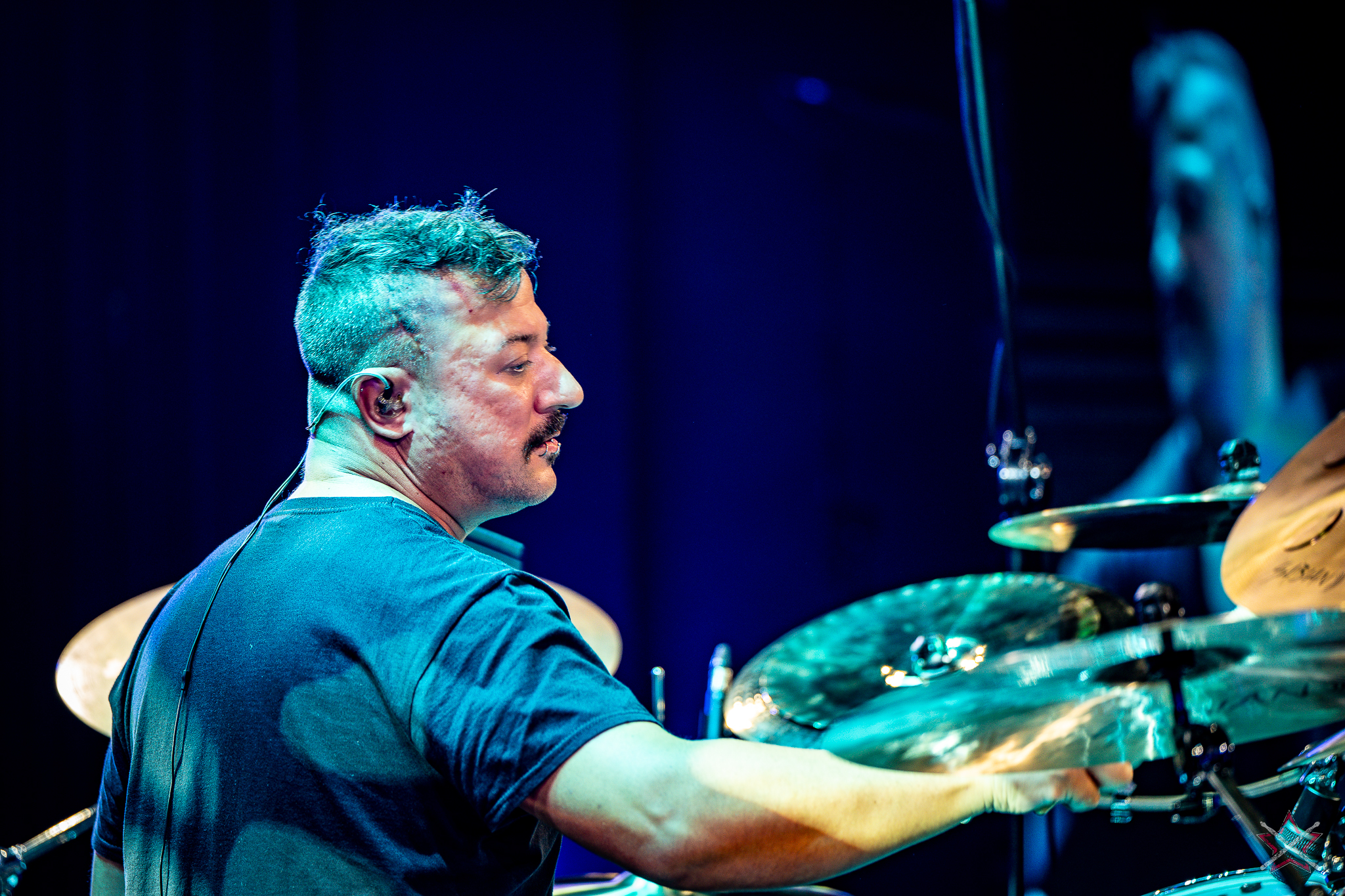 is best known to metal audiences for playing in bands such as Necrophagist and Obscura, he decided to showcase a different side of his musical personality during his performance at the Chorzow Cultural Center. Playing to fusion-style backing tracks, he showed his ability to utilize a wide variety of odd meters, laced with many interesting fills. The solo was varied – it included not only meter changes and cascading fills, but also gooves, some of them performed with the open-handed technique. Sebastian is an experienced studio and live drummer, which could be seen and heard.