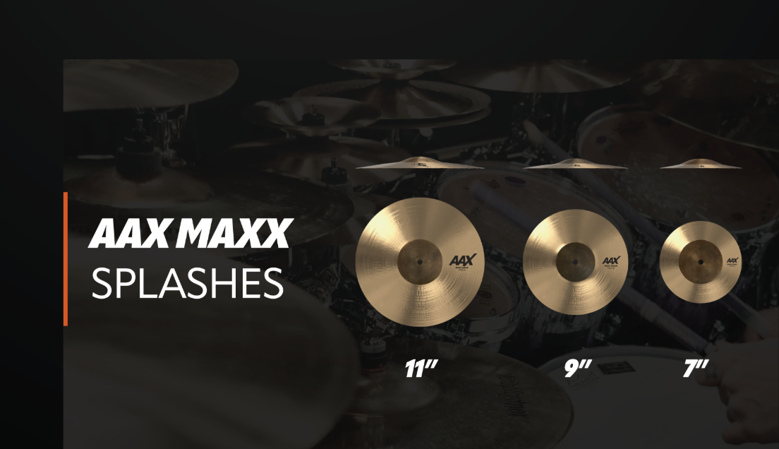Mike’s new cymbals start with a redesign of the original AAX MAX Splashes. The new 7, 9, 11″ AAX MAXX Splashes have a larger-raw bell and new shape that makes them slightly stiffer than the originals, making for more volume and projection without a strong fundamental pitch.