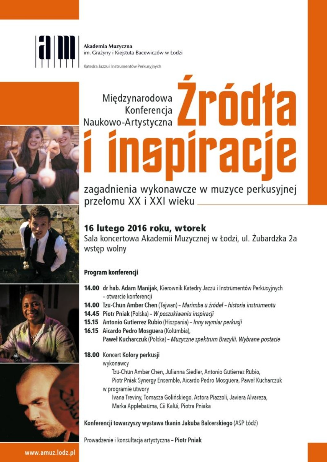More about the artists: http://www.amuz.lodz.pl/lifemotion/pl/aktualnosci/63-2016/150509-miedzynarodowa-konferencja-naukowo-artystyczna-zrodla-i-inspiracje-zagadnienia-wykonawcze-w-muzyce-perkusyjnej-przelomu-xx-i-xxi-wieku/